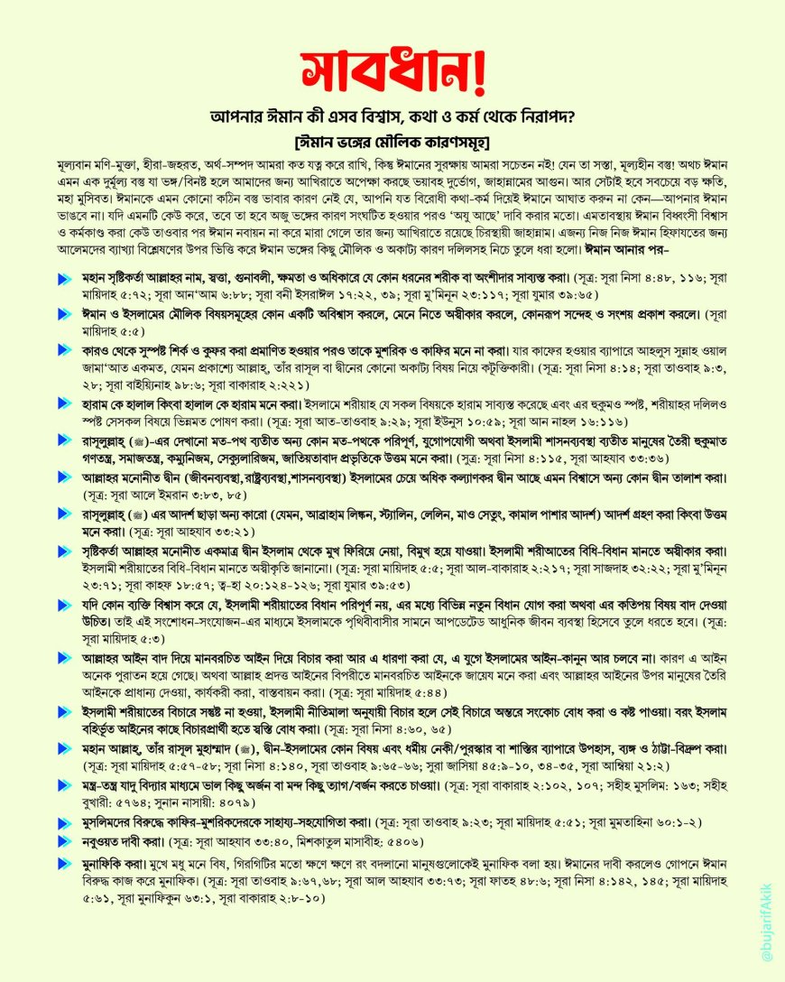 দলিল: সূরা বাকারাহ ২:১০২, ১০৭; সহীহ মুসলিম: ১৬৩; সহীহ বুখারী: ৫৭৬৪; সুনান নাসাঈ: ৪০৭৯